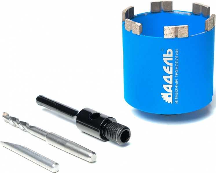 Алмазная коронка для подрозетников по железобетону Адель Super Fast SF-D70 SDS-Plus 82/65 мм (Adel Супер Фаст СФ-Д70 СДС-Плюс 82/65 мм) с адаптером М16 – SDS-Plus, центровочным твердосплавным сверлом и клином предназначена для скоростного сверления железобетона (армированного бетона), бетонных блоков, газобетона, кирпича и других строительных материалов с использованием ручного электроинструмента без охлаждения водой.