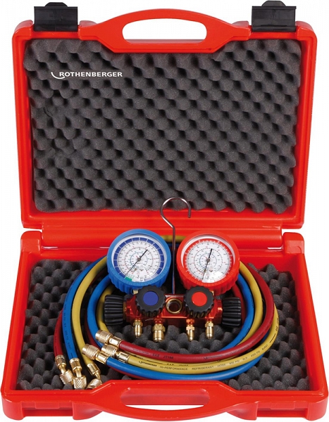 - Четырехпозиционный аналоговый манометрический коллектор для хладагентов R22, R134A, R407C, R404A Rothenberger 1/4 SAE