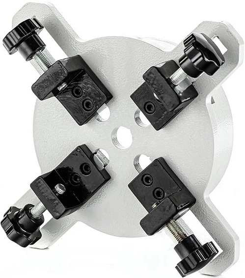 Фланцевый адаптер для пэ, пнд, пвх труб Просвар 40-160 мм (Prosvar 40-160 mm) – фланцедержатель, держатель, зажим для фланцев, втулок под фланец для фиксации литого бурта под фланец с коротким патрубком для сварки втулки под фланец с трубой или другим фасонным изделием по центру и правильной ориентации фланцев.