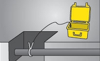 - Подключение с помощью сигнального зажима: сигнальный зажим необходим для того чтобы приложить сигнал Digitex к трубе или находящемуся под напряжением электрическому кабелю. Сигнал не нарушает передачу электроэнергии, а оператор не подвергается воздействию электрических коммуникаций