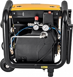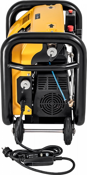 Проверенный мощный безмасляный поршневой компрессор с рычажным приводом и конденсаторным двигателем 230 В, 1500 Вт. Манометр для индикации давления воздуха в ресивере сжатого воздуха. Аварийный выключатель. - Шланги: