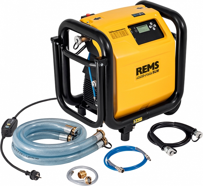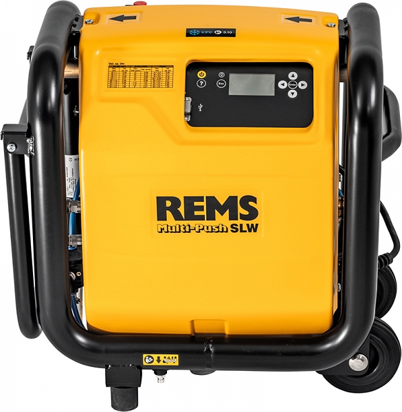 - Rems Мульти-Пуш SLW – всего один прибор с более чем 10 автоматическими программами для промывки и испытания под давлением. Постоянный контроль технологического процесса. Протоколирование. USB-разъем.