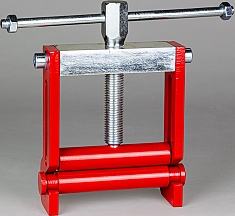 – Не следует держать пальцы, руки или ноги между различными компонентами устройства - Выкрутить полностью вверх шпиндель (1) устройства для передавливания