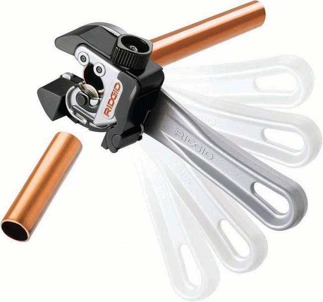 Мини труборез 2-в-1 с автоподачей и трещоткой Ridgid 118 (Риджид 118) предназначен для резки труб из твердой и мягкой меди, алюминия, латуни и пластмассы малых Ø 6 – 28 мм в ограниченных пространствах и тесных помещениях.