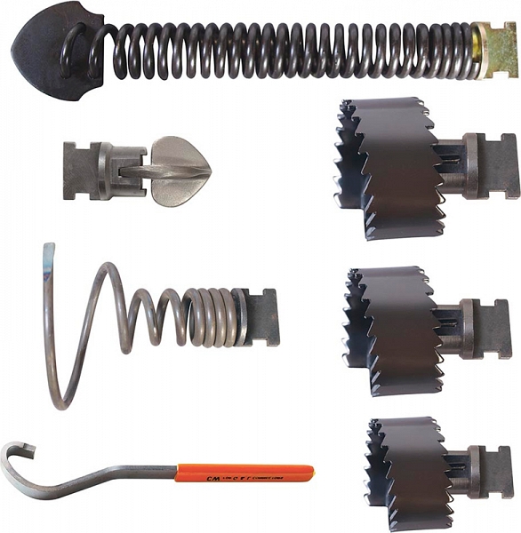Набор насадок для прочистки канализации General Pipe Cleaners EGCS (Дженерал Пайп Клинерс ЕГЦС) предназначен для прочистки канализационных труб Ø 75 – 300 мм электрическими и бензиновыми механическими прочистными машинами с секционными прочистными спиралями Ø 32 мм.