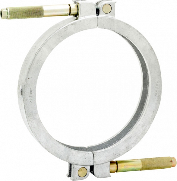 - Прочный, легкий и простой в использовании зажим с разъемным воротником для закругления (удаления овальности) полиэтиленовых труб перед процессом сварки, изготовлен из литого алюминия и оснащен 2-мя фиксирующими ручками, которые помогают перемещать по трубе