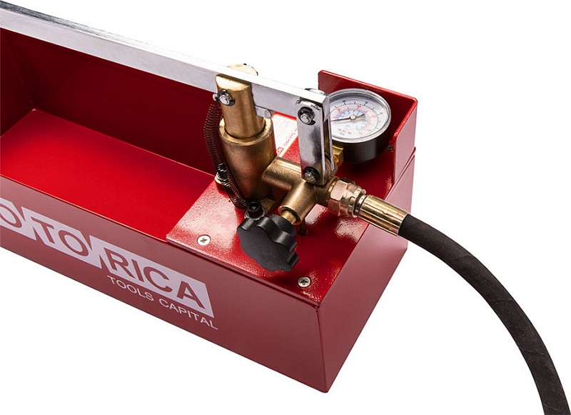Опрессовщик гидравлический ручной Rotorica Rotor Test Pro (Роторика Ротор Тест Про) – насос опрессовочный ручной одноклапанный для проверки герметичности контуров отопительных, холодильных, спринклерных систем; гидравлических испытаний систем отопления, водоснабжения, солнечных коллекторов, резервуаров и т.д.; быстрой ручной опрессовки систем отопления; проверки на утечку отопительных и воздушных контуров, холодильных систем, масляных и спринклерных систем и многих других трубных установок; проверки на герметичность давлением до 60 бар; ежедневного профессионального использования.