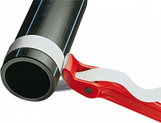 - В отличие от цепного аналога выполняет более прочный захват. При этом не происходит деформации или повреждения мягких металлических или пластиковых труб. Широко используется при работе с фильтрами, деталями со скользкими или неправильной формы поверхностями. Создает повышенное сопротивление скольжению, обладает длительным сроком эксплуатации, обеспечивает прочный захват