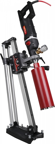 Станина для алмазного сверления с микроударом Bycon DBS-162 (Байкон ДБС-162) – сверхнадежная новейшая стойка для алмазного бурения c анкерно-вакуумным основанием, быстросъемным креплением двигателя для сверления отверстий Ø до 252 мм, в том числе и с микроударом.
