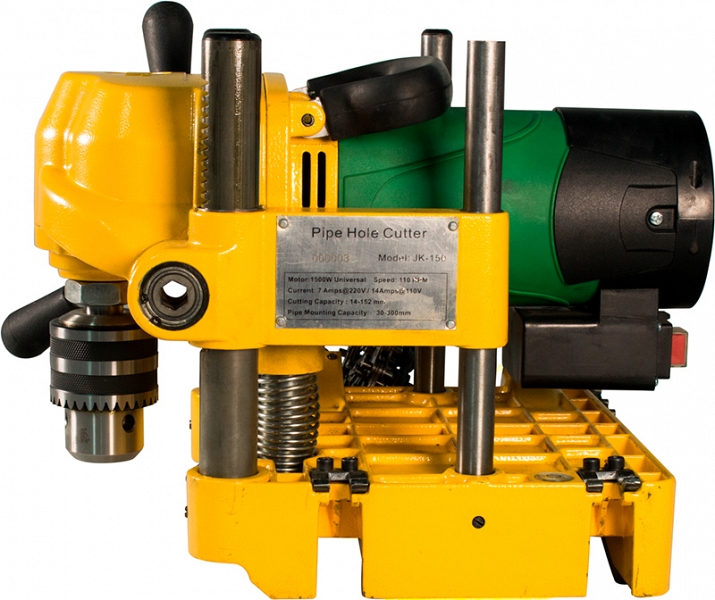 Станок для сверления отверстий в трубах Hongli JK150 (Хонгли ДжиК150) предназначен для вырезания отверстий Ø до 152 мм (6") в стальных трубах Ø 30 – 300 мм (1 1/4" – 12"). Отверстия различных размеров позволяют использовать фитинги для разветвления трубопроводов, находящихся не под давлением (установки разветвлений, отводов, тройников негерметизированных труб).
