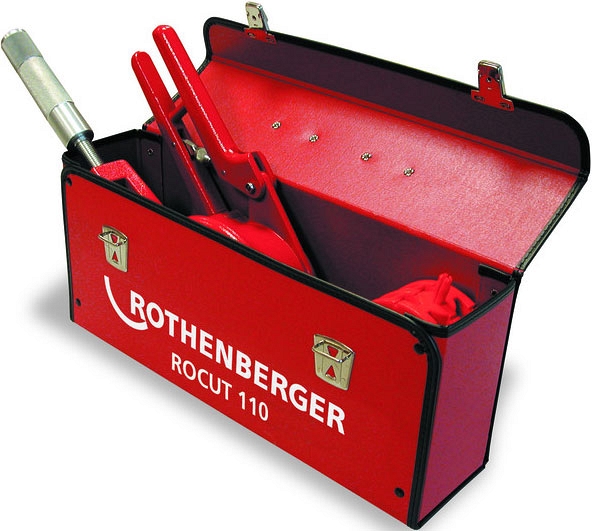 Труборез-фаскосниматель для пластиковых труб Rothenberger Rocut 110 (Ротенбергер Рокат 110) – универсальный инструмент для абсолютно точной перпендикулярной резки и снятия фаски под углом 15° тонкостенных и толстостенных пластмассовых труб из ПВХ, ПЭ, ПП, PE-X, ПБ и ПВДФ, а также звукоизоляционных труб Ø 32 – 110 мм.