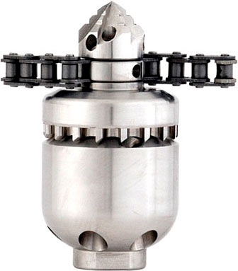 - Фиксатор цепи приводится в движение высокопроизводительными турбинами, достигая, таким образом, непревзойденных результатов в удалении корней, грязевых и минеральных отложений из канализационных сетей Ø 100 – 1200 мм