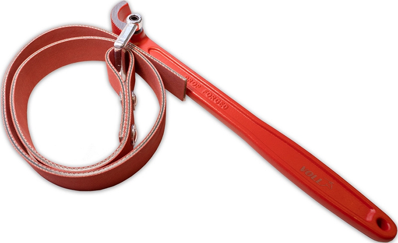 Усиленный ремешковый ключ Voll 8" (Волл 8") – ключ ременной трубный для труб для бережной работы с пластиковыми и полированными трубами, трубами с мягким металлическим покрытием, фильтрами Ø до 220 мм (8"), а также с любыми поверхностями неправильной формы и скользкими поверхностями, обеспечивая надежный прочный захват без деформирований и повреждений, предотвращая царапины.